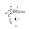 根據本實施方式的教導,提供了一種裝置,包括:光導管,該光導管至少包括:第一光學結構,該第一光學結構具有第一折射率、在光導管的近端處的輸入表面以及第二表面,以及第二光學結構,該第二光學結構具有所述第一折射率、第三表面以及在光導管的遠端處的輸出表面,該光導管具有在輸入表面與第二表面之間的方向上平行於第一光學結構的長尺寸的縱軸,以及在第二表面與第三表面之間的界面,該界面相對於光導管的縱軸傾斜,使得平行於縱軸注入到輸入表面的輸入光線從輸出表面輸出作為不平行於輸入光線的輸出光線,其中,第二表面通過間隙與第三表面分開。According to the teaching of the present embodiment, a device is provided, comprising: a light pipe, the light pipe comprising at least: a first optical structure having a first refractive index, an input surface at the proximal end of the light pipe and a second surface, and a second optical structure having the first refractive index, a third surface and an output surface at the distal end of the light pipe, the light pipe having a longitudinal axis parallel to the long dimension of the first optical structure in the direction between the input surface and the second surface, and an interface between the second surface and the third surface, the interface being inclined relative to the longitudinal axis of the light pipe, so that input light injected into the input surface parallel to the longitudinal axis is output from the output surface as output light not parallel to the input light, wherein the second surface is separated from the third surface by a gap.