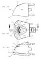 Referring toFIG. 19, in one embodiment, anapplicator instrument630 for dispensing surgical fasteners includes a curvedouter shaft640, similar to the structure described above inFIG. 1, having aproximal section642 and adistal section644 that is coupled with the proximal section via acurved section645. In one embodiment, theapplicator instrument630 preferably includes an outershaft rotating element655 rotatably mounted to a distal end of adevice housing635. The outershaft rotating element635 is connected with theproximal section642 of theouter shaft640 for selectively rotating theouter shaft640. As a result, the outershaft rotating element655 enables an operator to selectively rotate theproximal section642 of the curvedouter shaft640 along a longitudinal axis A1for changing the orientation of thedistal end section644.
