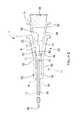 In the ready position, theshaft34 of the needle extends through thevalve disc706. The shaft of the needle holds theslits708 open sufficient to allow gas to pass through the valve disc, in particular in the proximal direction, but insufficient to allow blood to pass through the valve disc. In this way, the user may be provided with a flashback indication, as described above.