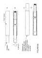 FIG. 68 shows a PV with an outer sleeve through which the mouthpiece/atomizer and battery parts of the PV can slide.FIG. 68A shows a schematic external view, with the mouthpiece or inhalation tip fully extended; FIG.68B is a cross sectional view ofFIG. 68A, showing the mouthpiece/atomizer and battery parts. InFIG. 68C, the inhalation tip is fully retracted within the sleeve; as a consequence, the battery end of the PV is now protruding out of the sleeve.FIG. 68D shows the internal parts of theFIG. 68C view. When the inhalation tip is fully retracted, the user can click on the other end to cause the inhalation tip to pop out; clicking it again can cause the tip to retract, in much the same was a clicking the top of a ballpoint pen. Clicking the end to cause the inhalation tip to pop out can also be used to turn the PV on to start heating.