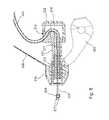 FIGS. 9-15 show a merely illustrative use of earplug (320). As can be seen inFIG. 9, earplug (320) is initially positioned outside of a patient's ear. At this stage, fluid has not yet been injected into earplug (320). The operator may begin the iontophoresis procedure by inserting sealing element (324) of earplug (320) into a patient's ear canal (EC). As can be seen inFIG. 10, sealing element (324) is positioned to bear against the walls of the ear canal (EC), simultaneously securing earplug (320) and creating a fluid seal between sealing element (324) and the wall of the ear canal (EC). The sealing of the ear canal (EC) creates a fluid tight cavity between tympanic membrane (TM) and earplug (320) that may be used to contain iontophoresis fluid. While not shown inFIGS. 9-10, a liner strip (380) as described below may be used to assist the operator in positioning earplug (320) in the ear canal (EC) without the operator's fingers getting stuck to the pressure sensitive adhesive on sealing element (324).