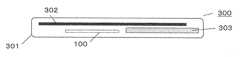 InFIG. 15B, amongsubstrate302,battery pack303, andwireless charging module100,substrate302 is disposed furthest on the display section side (upper side inFIGS. 15A to 15E), andbattery pack303 andwireless charging module100 are disposed in parallel on the rear side ofsubstrate302. That is,battery pack303 andwireless charging module100 are not stacked, and are disposed in parallel in the transverse direction inFIGS. 15A to 15E. At least a part ofsubstrate302 andbattery pack303 are stacked, and at least a part ofsubstrate302 andwireless charging module100 are stacked. Thus, sincebattery pack303 andwireless charging module100 are not stacked, casing301 can be made thinner. In addition, an area forsubstrate302,battery pack303, andwireless charging module100, in particular, can be adequately secured, and there is a high degree of design freedom. The L values of chargingcoil30 andNFC coil40 can be adequately secured.