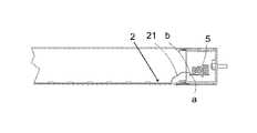 Referring toFIG. 24, an output terminal of the printed circuit board of thepower supply5 may have soldering pads “a” provided with an amount of tin solder with a thickness sufficient to later form a solder joint. Correspondingly, the ends of theLED light strip2 may have soldering pads “b”. The soldering pads “a” on the output terminal of the printed circuit board of thepower supply5 are soldered to the soldering pads “b” on theLED light strip2 via the tin solder on the soldering pads “a”. The soldering pads “a” and the soldering pads “b” may be face to face during soldering such that the connection between theLED light strip2 and the printed circuit board of thepower supply5 is the most firm. However, this kind of soldering typically includes that a thermo-compression head presses on the rear surface of theLED light strip2 and heats the tine solder, i.e. theLED light strip2 intervenes between the thermo-compression head and the tin solder, and therefore may easily cause reliability problems. Referring toFIG. 30, a through hole may be formed in each of the soldering pads “b” on theLED light strip2 to allow the soldering pads “b” overlay the soldering pads “b” without face-to-face and the thermo-compression head directly presses tin solders on the soldering pads “a” on surface of the printed circuit board of thepower supply5 when the soldering pads “a” and the soldering pads “b” are vertically aligned. This is an easy way to accomplish in practice.