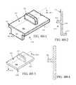 It should be noted that the present latching mechanism may function with most types ofstructures104 as first portion (one or more lateral supports)132 ofadapter member128 may be configured commensurate with rail track profile configurations (best shown inFIG. 7B-1), independent ofsecond portion702,keeper122, or the remaining components of the present invention. For example,structure104 may have a circular profile in which case, first portion (one or more lateral supports)132 ofadapter member128 may comprise of a commensurate configuration in relation to rail while maintaining itssecond portion702 connection withkeeper122 the same. Accordingly, the present invention may be substantially universally applicable tomost structures104 so long as first portion (one or more lateral supports)132 ofadapter member128 may be configured commensurately.