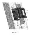 FIGS. 9I-1 to 9I-5 are non-limiting, exemplary illustrations of a keeper in accordance with one or more embodiment of the present invention. As illustrated, in this non-limiting, exemplary instance,keeper948 is coupled with a rail by a set offasteners988.Keeper948 is comprised of aconnection base958 and arelief984. Theconnection base958 includes a set ofapertures952 for use offasteners988 to connectkeeper948 with rail. Relief ofkeeper984 is a cavity that receiveslatch126.Keeper948 also includes anangled section954 that functions as a chamfered edge that guides thelatch126 intorelief984. In general,portion956 that defines relief orcavity984 may be adjusted (cut in size along its length) for appropriate fitting. Serrations986 (at both sides of portion956) may be used as indicating marks for trimmingportion956 in the field (at job site) because each installation is different due to size and out of square installations (which is illustrated inFIG. 9I-5).