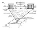 In one embodiment, anantenna array2102 having a particular array size and shape is disclosed. Theantenna array2102 described herein is a three dimensional antenna array. The shape of the three-dimensional antenna array may include, but not limited to, arbitrary shaped planar antenna arrays as well as cylindrical, conical, and spherical. The antenna array comprises the one or more antennas of a particular type, size and shape. For example, one type of antennas is a so-called patch antenna having a square shape and a size compatible with operation at a particular frequency (e.g. 10 GHz). Further, the antennas are arranged in a square configuration and having a spacing, e.g., of one wavelength (1λ). Those of ordinary skill in the art will recognize that additional or alternative shapes, spaces, and types of antennas may also be used. One skilled in the art would also appreciate that the size of one or more antennas may be selected for operation at any frequency in the RF frequency range (e.g., any frequency in the range of about 900 MHz to about 100 GHz). The types of antennas that may be used in the antenna array of the present disclosure may include, but are not limited to, notch elements, dipoles, or slots, or any other antennas well known to those of ordinary skill in the art. In addition, reference will be made herein to generation of an antenna power transmission wave having a particular shape or power transmission wave-width based on the shape of the antenna array. Those of ordinary skill in the art will appreciate that antenna power waves having other shapes and widths may also be used and may be provided using well-known techniques such as by inclusion of amplitude and phase adjustment circuits into appropriate locations in the antenna feed circuit.