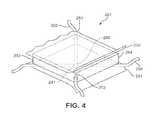 FIG. 19 also shows anotherarray550 oftiles551 in the fabric on theside513 of the upper. Again, this array is shown in phantom, because it is held between anouter layer560 and aninner layer561, as shown in the blow-up of a cross-section of the fabric shown inFIG. 19.