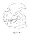 FIGS. 42A and 42B schematically illustrate mask systems on a patient that utilize selectively extensible headgear. InFIG. 42A, anelastic strap portion650 forms a bridge between relativelynon-extendible portions652,654 of headgear, thereby allowing the lower strap portion, as a whole, to stretch.