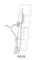 FIG. 22 illustrates placement of the disclosed system in situ in actual use, wherein the delivery catheter is advanced through the inferior vena cava, and the guidewire and prosthesis extend into the abdominal aorta. As illustrated,portion118 of the delivery system is permitted to flex into the disclosed reverse question mark shape, facilitating alignment and placement of the prosthesis1700 by rotating the prosthesis about the paddle that is urged against the arterial wall above the access opening into the abdominal aorta. Also pointed out are the location of the marker at the base of the paddle, as well as the marker on thebeveled tip122 of the delivery catheter. As mentioned above, the marker at the base of the paddle (or other marker that could be provided at that location in other embodiments of prostheses herein) helps the physician locate the hole in the vessel wall, and to more accurately install the prosthesis successfully.