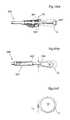 FIGS. 102a-jshows an instrument for use in a method of engaging a stretchingdevice10 to thestomach wall12 of a patient. The instrument is adapted to be inserted through a narrow tube shaped object such as a gastroscope, used in an intraluminar procedure, or a laparoscopic trocar used in a laparoscopic procedure. The instrument comprises anelongated member650 which is adapted to be flexible by means of a construction comprising multiple ring shaped members, however it is equally conceivable that saidelongated member650 is adapted to be flexible by means of saidelongated member650 being made of a flexible or adjustable material. Theelongated member650 is inserted into the body and placed in proximity to thestomach wall12 of the patient, from the outside or inside thereof. Theelongated member650 has aspecial holding device651 adapted to hold the stomach by means of mechanical grabbing members or vacuum. Thespecial holding device651 comprises a first joint652 and a second joint653, which enables thespecial holding device651 be operable in relation to theelongated member650 and thereby place the part of the holdingdevice651 comprising the mechanical grabbing members or vacuum elements in contact with thestomach wall12 of the patient.FIG. 102bshows thespecial holding device651 when placed in contact with thestomach wall12 of the human patient, after which the special holdingmember651 connects to thestomach wall12, for holding thestomach wall12.FIG. 102cshows the instrument when the step of advancing a pushingrod654 from theelongated member650 is performed. The pushingrod654 pushes thestomach wall12 to create a cavity or pouch thereof.FIG. 102dshows the instrument turned 90° in relation toFIGS. 102a-c. This view shows thespecial holding members651a,boperably attached to two sides of theelongated member650 and being in contact with thestomach wall12, holding thestomach wall12 as the pushingrod654 pushes to create a cavity or pouch. When the pushingrod654 has pushed thestomach wall12 to a desired position thespecial holding devices651a,bmoves towards the pushingrod654 and thereby closes the cavity or pouch.
