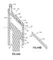 FIGS. 44A-44B are respectively a schematic cross-sectional view and a cross-sectional view of another embodiment of the bladder syringe and a bladder therefor, each set at an angle to allow for more surface area of contact between the bladder and the plunger element.