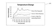FIG. 13bshows aline graph1325 illustrating the results of the 30 minute test of the hydrated polyacrylate with and without a reflective shield. It should be noted the superior performance of the hydrated polyacrylate with a reflective shield.