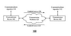 More generally, “guided electromagnetic waves” or “guided waves” as described by the subject disclosure are affected by the presence of a physical object that is at least a part of the transmission medium (e.g., a bare wire or other conductor, a dielectric, an insulated wire, a conduit or other hollow element, a bundle of insulated wires that is coated, covered or surrounded by a dielectric or insulator or other wire bundle, or another form of solid, liquid or otherwise non-gaseous transmission medium) so as to be at least partially bound to or guided by the physical object and so as to propagate along a transmission path of the physical object. Such a physical object can operate as at least a part of a transmission medium that guides, by way of an interface of the transmission medium (e.g., an outer surface, inner surface, an interior portion between the outer and the inner surfaces or other boundary between elements of the transmission medium), the propagation of guided electromagnetic waves, which in turn can carry energy, data and/or other signals along the transmission path from a sending device to a receiving device.
