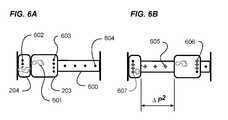 FIGS. 6A and 6B are exemplary diagrams showing top views of a Pilates apparatus with an instructional feedback system. More specifically,FIG. 6A shows a top view of a Pilates apparatus comprising amonorail600, although a pair of parallel rails as previously described may be used. Further, the drawing shows aslidable carriage203 and astationary exercise platform204 at a first end.Footprints601 represent the approximate foot positions of an exerciser not shown readying to perform a “lunge” exercise.