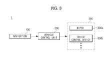 Thecontroller200 may be configured to control a plurality of theservice device300 installed inside thevehicle1. When thecontroller200 receives an operation request from thenavigation unit100, thecontroller200 may transmit a control command to theservice device300 configured to operate the related function. Theservice device300 may include all devices, such as, awiper300aand acruise control device300b(seeFIG. 3), configured to operate various services of thevehicle1. Theservice device300 is not be limited to thewiper300aand the erasecontrol device300b, and may further include a blind spot warning system, a lane departure warning system, a tire pressure monitoring system, and the like. At this time, thecruise control device300bmay mean an electronic cruise control device and may mean a device configured to allow the vehicle to allow the driver to drive at a desired speed without applying pressure to an accelerator pedal.