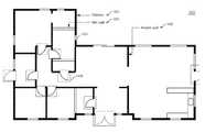 FIG. 14B illustrates the detection of pathways for generating perimeters and the detection of standard symbols, according to one embodiment. In the simplified embodiment illustrated, thickblack walls1420 have been identified as exterior walls. Unfilledinterior walls1430 next to a kitchen or bathroom has been identified as a wet wall. Other, thinnerblack walls1425 have been identified as interior walls. Eachdoorway1435 has been identified as such.Windows1431 may also be identified for enhanced scanning as appropriate for windows and surrounding walls.