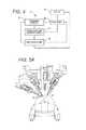 FIGS. 5A and 5B show a Patient Side Cart22 and asurgical tool62, respectively. Thesurgical tool62 is an example of thesurgical tools26. The Patient Side Cart22 shown provides for the manipulation of threesurgical tools26 and animaging device28, such as a stereoscopic endoscope used for the capture of images of the site of the procedure. Manipulation is provided by robotic mechanisms having a number of robotic joints. Theimaging device28 and thesurgical tools26 can be positioned and manipulated through incisions in the patient so that a kinematic remote center is maintained at the incision to minimize the size of the incision. Images of the surgical site can include images of the distal ends of thesurgical tools26 when they are positioned within the field-of-view of theimaging device28.