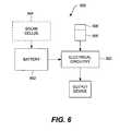 FIG. 6 is a block diagram of aUV monitoring system600 according to one embodiment of the invention. TheUV monitoring system600 is generally similar to the UV monitoring systems illustrated inFIGS. 3-4D. However, in theUV monitoring system600, abattery602 provides power to theelectrical circuitry302. In other words, in this embodiment, the one or moresolar cells304 are optional. TheUV monitoring system600 can operate without the need for any light to impinge upon the one or moresolar cells304. If theUV monitoring system600 does include the one or moresolar cells304, the power produced by the one or moresolar cells304 can be coupled to thebattery602 so as to recharge the battery. Thebattery602 also allows theelectrical circuitry302 to maintain data even while no light is present (e.g., if a volatile memory is used to store data). The ability to maintain data (such as in a memory device) can be advantageous. For example, theUV monitoring system600 may desire to output information over longer durations of time, or may desire to process data in a differential manner. TheUV monitoring system600 can also further include one or more auxiliary sensors.