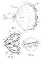 Thecoupling frame segments400, adjacent theproximal end390 or central portion, may include afirst opening404, asecond opening406 and afixture holding piece408. Thefirst opening404 may be sized and configured to couple toretainer fingers430 of the hub382 (FIG. 27), discussed in further detail herein. Thesecond opening406 may be sized and configured to stitch thefirst layer394 of thetissue growth member388 to theoccluder frame segments386. Thefixture holding piece408 may be sized and configured to hold theoccluder frame366 through various frame preparation processes, such as electro-polishing. Once the preparation processes are complete thefixture holding piece408 may be removed.