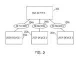 FIG. 2 shows a schematic of an exemplary simplified network where three user devices connect to a content management system server over three data networks;