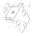 Referring now toFIG. 1, an example embodiment of thesafety plate100 is illustrated.FIG. 1 illustrates a perspective top view of thesafety plate100 of an example embodiment. Thesafety plate100 of the example embodiment is shown to include a safetyplate shielding portion101 and a safetyplate stud bracket102. The safetyplate shielding portion101 is configured with a rigid panel or plate designed to protect the rear surface of an electrical box adjacent to which thesafety plate100 is installed. As such, the safetyplate shielding portion101 can be fabricated from metal, thick galvanized steel, hard plastic, or like material that is resistant to penetration by a sharp object. The safetyplate stud bracket102 is configured to attach to a wall stud or other structural element of a building. In particular, the safetyplate stud bracket102 of an example embodiment is configured to wrap over the side of a 2″×4″ wooden stud. The safetyplate stud bracket102 includes safety platestud coupling teeth103 to bite into or attach to the side of a wooden stud and hold thesafety plate100 in place. The safetyplate stud bracket102 can also include holes for nails or screws to attach thesafety plate100 to a stud. Thesafety plate100 can also include safety platestud anchor wings104 to anchor thesafety plate100 to the 2″×4″ wooden stud with a regular sheet rock nails or screws.