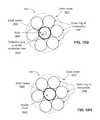 In another embodiment, the waveguide system can be configured to cause the electric field pattern of the electromagnetic waves to have a constant azimuthal rotation by configuring thecouplers4704 as described inFIG. 47E. Suppose an obstruction is located in, for example, the southern region of the transmission medium. In this configuration, the electric field structure of the electromagnetic waves will encounter the obstruction for a short period of time, which in turn reduces the propagation loss of electromagnetic waves propagating on the transmission medium. In this embodiment, the waveguide system may also be able to detect the location of the obstruction by detecting at an instance in time when the electromagnetic wave encounters a disturbance due to the obstruction. The detection may be performed by the remote waveguide system receiving the adjusted electromagnetic waves having the rotating electric field structure, and/or by way of reflections detected by the waveguide system generating the adjusted electromagnetic waves. In yet other embodiments, the waveguide system can be configured to generate a helical electromagnetic wave as shown inFIG. 47F. In this configuration, the intensity of the electric field structure of the helical electromagnetic waves near an outer surface of the electromagnetic waves is low, thereby being less affected by an obstruction on the other surface of the transmission medium.