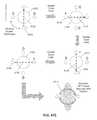 FIGS. 47A, 47B, 47C, 47D, 47E, and 47F are block diagrams illustrating example, non-limiting embodiments for launching electromagnetic waves having a variety of electric field structures in accordance with various aspects described herein.FIG. 47A depicts a transverse view of atransmission medium4702 such as, for example, a dielectric core, an insulated conductor, or other transmission media described in the subject disclosure that is suitable for propagating electromagnetic waves.FIG. 47A further depicts fourcouplers4704 located in north, south, west and east coordinates surrounding thetransmission medium4702. Thecoupler4704 can be a dielectric coupler such as shown inFIG. 9A, anMMIC1870 such as shown inFIG. 18T, waveguide slots such as shown inFIG. 18S, or another coupler described in the subject disclosure that can be used to launch electromagnetic waves along atransmission medium4702. Thecouplers4704 can be separated by a gap or can touch a surface of thetransmission medium4702. Thecoupler4704 can be surrounded by a cover (not shown) that directs electromagnetic waves to thetransmission medium4702. The cover can be a metallic cover or a carbon material. Eachcoupler4704 can be coupled to a transceiver such as shown inFIGS. 10A and 14 for launching electromagnetic waves onto thecoupler4704 or receiving electromagnetic waves from thecoupler4704. In other embodiments, only the transmitter portion of the transceiver circuit can be used. For illustration purposes only, each coupler will be assumed to be coupled to a transceiver circuit. The transceiver circuit of each coupler can be configured to transmit electromagnetic waves that can combine between couplers to generate a desired wave mode. Additionally, the transceiver circuit of each coupler can be synchronized so that electromagnetic waves can be generated with specific phase offsets betweencouplers4704.