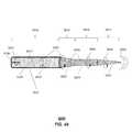 A quarter cycle later, the electromagnetic waves propagating along the north andsouth couplers4704 are at a null, while anelectric field vector4706 points from west to east as a result of the out-of-phase polarities of the electromagnetic waves propagating in the west andeast couplers4704, respectively. Another quarter cycle later, the electromagnetic waves propagating along the west andeast couplers4704 are once again at a null, while anelectric field vector4706 points from north to south as a result of the out-of-phase polarities of the electromagnetic waves propagating in the north andsouth couplers4704, respectively. At yet another quarter cycle later, the electromagnetic waves propagating along the north andsouth couplers4704 are once again at a null, while anelectric field vector4706 points from east to west as a result of the out-of-phase polarities of the electromagnetic waves propagating in the east andwest couplers4704, respectively. The azimuthal rotation of theelectric field vector4706 results in a hybrid wave mode (e.g., HE11) that has a continuous azimuthal rotation4710 (i.e., circularly polarized) as shown inFIG. 47E. It will be appreciated that the order of polarities between thecouplers4704 and their corresponding transition between quarter cycles can be adapted to cause the hybrid wave to instead have acontinuous azimuthal rotation4710 in a counterclockwise direction.