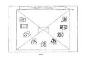 Using a remote control or other control device, a user may highlight one of the graphical icons822 located substantially a center828 (e.g., the apex of the curve) of the pattern to enable selection of the one graphical icon.Digital media device35 may receive a selection from a remote (e.g., remote550) to move the arrangement graphical icons in a first direction or a second direction (e.g., in the curved pattern shown inFIG. 8A, the graphical icons may be moved rotationally in a clockwise or counterclockwise direction). After movement of icons822, one or more of the graphical icons822 may be different, where the movement of the arrangement of icons822 enables at least one graphical icon to be rotated beyond the display edge and the one or more previously hidden icons to enter the display area. After movement, the graphical icon located substantially at the center of the pattern may be in a position to enable selection (e.g., the apex of a curved pattern shown).Digital media device35 may receive a selection of the highlighted icon for at least one media application, service application, or media and service application. The selected media application, service application, or media and service application may be displayed on thetelevision display32. More specifically, upon receiving a selection of the highlighted icon,digital media device35 executes programming to provide the service application fromgateway device10 todigital media device35 via a user premises data communications network (e.g., a wireless or wired communication system).