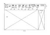 Alternatively, as illustrated inFIG. 8B, graphical icons830, similar to graphical icons822 shown inFIG. 8A, may be overlaid on adisplay screen832 in a substantially linear arrangement. Icons822 shown inFIG. 8A or icons830 shown inFIG. 6B may have either a substantially curved or substantially linear arrangement. A signal from at least one media source may be the primary image ondisplay screen832, and the arrangement of graphical icons830 may be a secondary image overlaid onto theprimary image832.