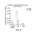 FIG. 7 depicts results of assays in which six-week old male C57BL/6 mice were injected via tail vein (1.0 e11 GC/mouse) with AAV9 wt and AAV9.HR encoding luciferase gene; four weeks later, specific organs were harvested for qPCR analysis;