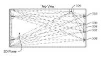 Yet again, a combination of manual and automatic mapping may be used. For instance, a user may be presented with a UI such as those described above to indicate the locations of the walls of the enclosure, with subsequent reflections determined to have come from the walls based on the known locations of the LED assemblies being ignored and other reflections being inferred to be from intervening objects such as listeners or audio speakers. Similarly, the user may use a touch display to touch a presentation of an estimated model of the enclosure to indicate where audio speakers and/or listeners are, with reflections from those locations being ignored by the LED assemblies and other reflections inferred to be from the walls, thereby refining the map of the enclosure.