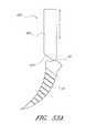 With reference to the curvilinear anchors and delivery devices depicted inter alia inFIGS. 2-4,FIGS. 53A-53C illustrate an embodiment of adelivery tool400 adapted to drive one or more anchors into a desired implantation or anchor location in patient tissue (patient tissue not illustrated).FIGS. 53A-53C also illustrate embodiments of a deployment sequence employing thedelivery tool400 andanchor25.