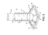 To prevent tube migration, the interior of thetube holding element12 may be provided within one or more gripping elements. The one or more gripping elements may take the form of a plurality ofprotuberances30 that are formed on and spaced about the interior wall of thecylindrical element12. Preferably, theprotuberances30 are sized to grip into the wall of thetube20 without penetrating through the wall of thetube14. In one example, thegripping elements30 are provided with surfaces that function to inhibit removal of thetube20 while allowing the tube to be moved downwardly (towards the patient) as particularly shown inFIG. 2. In another example, thegripping elements30 are in the form of teeth as shown inFIG. 7. In yet another example, thegripping elements30 are in the form of protuberances having squared edges as shown inFIG. 8. In yet further examples, the one or more gripping elements may be in the form of moveable elements that will function to tighten against (or move into) thetube14 in response to any movement of thetube14 relative thereto. By way of non-limiting example, the moveable elements may comprise a rocker-like element34 that would be pivotally attached to the interior surface of thetube holding element12 as illustrated inFIG. 9. As will be appreciated, the rocker-like element34 can be provided with cam surfaces that would be placed into engagement with thetube14. A slight movement of thetube14 relative to the rocker-like element34 will then cause the rocker-like element34 to responsively move about its pivot attachment whereupon a one of the cam surfaces will be driven into the wall of thetube14 and further movement of thetube14 in that same direction will be inhibited. In a similar manner, the moveable element may comprise a ball-like element36 that would be rotationally attached via use of an off center axle to the interior surface of thetube holding element12 as shown inFIG. 10. The surface of the ball-like element36 would also be placed into engagement with thetube14 such that a slight movement of thetube14 relative to the ball-like element36 will cause the ball-like element36 to responsively rotate whereupon the thicker part of the ball-like element36 will be driven into the wall of thetube14 and further movement of thetube14 in that same direction will be inhibited.