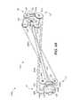 FIGS. 4A-4B depict a sixth embodiment of the belt drive assembly, generally designated as100f. Thebelt drive assembly100fis substantially similar to thefirst embodiment100a, described herein. Thebelt drive assembly100f, however, includes a third pair of coaxialidler pulley wheels405 rotatably mounted at the first end U1 of thefirst plate120 and a fourth pair of coaxialidler pulley wheels410 rotatably mounted at the second end L2 of thesecond plate140, so that bothplates120,140 have coaxial pairs of idler pulleys at both the upper and lower ends of theplates120,140.
