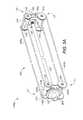 The firstendless belt400ais trained on each of the idler pulley wheels of the first pair of coaxialidler pulley wheels125, thefirst groove430aof the drive pulley wheel130a, each of the idler pulley wheels of the second pair of coaxialidler pulley wheels145, and thefirst groove450aof the driven pulley wheel150a. The secondendless belt400bis trained on thesecond groove430aof the drive pulley wheel130a, each of the idler pulley wheels of the third pair of coaxialidler pulley wheels405, each of the idler pulley wheels of the fourth pair of coaxialidler pulley wheels410, and thesecond groove450bof the driven pulley wheel150a, such that the firstendless belt400aand the secondendless belt400bare parallel to one another and define a configuration that is generally rectangular and includes four rounded corners when viewed from the side, as illustrated inFIGS. 5A-5B.