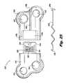 Referring now toFIG. 29, anotherbone plate assembly1500 is shown. Thebone plate assembly1500 includeswires1590 extending betweenhubs1592 located on eachplate portion1502,1520. Thewires1590 connect to one of theplate segments1502,1520 and aspool1594 which is free to rotate. When thespool1594 is rotated, thewires1592 wrap around thespool1594 thereby shortening the wire length and pulling theplate segments1502,1520 inward. Preferably,multiple wires1590 are used. Also, thespool1594 may be made with ratchet teeth to selectively rotate in one direction and, in turn, thewires1590 could be tightened before implantation, thereby creating a pre-load.
