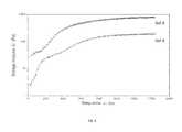 This experiment was performed using the apparatus and method described in (A) above, but with a frequency of 10 rad/sec. The results are shown inFIG. 6, which is a graph of G′ versus time for Hydrogel A and Hydrogel B. Hydrogel B has a significantly higher G′ than Hydrogel A at all time points. This difference in G′ is particularly significant at early time points.