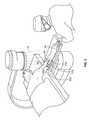 In the illustrated embodiment,sheath assembly300 is retained in a curved configuration including a 180° curve. The operator is able to introduce aninterventional tool40 intoport316 ofcurvable tube310 in a first direction towards the patient's abdomen, for example.Interventional tool40 passes throughcurvable tube310 and entersaccess point30, directly or indirectly, in a second direction that is opposite, or rotated 180°, relative to the first direction.Curvable tube310 in a curved configuration thus allows a physician or healthcare practitioner to operate away from a field ofradiation15 and/or while in an ergonomic position. The operator's hands are positioned outside of field ofradiation15 during the operation, and the physician's head, neck and other body part's may be positioned a greater distance from field ofradiation15.