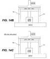 FIGS. 14A-E illustrates a pressing apparatus having first and second press stops that may be set a different elevations and various method features for forming material layers of, for example, a three dimensionally shaped object;