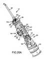 Thetip base646 may be configured to receive thetip inlet642 and a portion of thetip382 that extends below thetip collar644. Thetip base646 may include a tip locking mechanism650 and atip release button394. Thetip release button394 may be movably connected to thetip base646 and may selectively disengage the tip locking mechanism650. The tip locking mechanism650 may include a movable lock housing658 that is selectively engageable with thetip388 and, specifically, thetip locking groove652. In the exemplary embodiment shown, the lock housing658 may define an oblong aperture through which thetip382 extends. A raised ridge659 on an inner wall of the lock housing658 defining the oblong aperture may be aligned with thetip locking groove652. Thetip release button394 and the lock housing658 may also be operably connected to atip release spring648. In the embodiment shown, thetip release spring648 is positioned between the lock housing658 and awall649aextending from the top of thetip connector649. (SeeFIGS. 20A and 20B.) Thetip release spring648 biases the lock housing658 into the lockinggroove652 when thetip382 is inserted through thetip base646 into thetip connector649. Thetip release button394 may be used to push the lock housing658 against thetip release spring648 and remove the edge of the lock housing658 from within the lockinggroove652, there by allowing thetip382 to be removed from thetip base646.