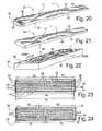 FIGS. 30 to 33 illustrate successive steps in a method according to, amongst others, the second aspect of the invention. As noted in the introduction, this second aspect substantially relates to the fact that during the realization of boards of laminate material, from which the floor panels are made, at least oneimpression54 is provided in the laminate material by means of a press treatment, after which thisimpression54 is employed as a guidinggroove22 in further treatments.
