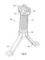 After thebutton150 is depressed, the legs move downward from thehandle110 and expand outward from one another as will be described further on, to a fully deployed position.FIG. 17 is an upper left front perspective view offore grip1190 ofFIG. 6 withlegs120 down in a deployed expanded position.FIG. 18 is an upper left rear perspective view ofFIG. 17.FIG. 19 is a rear planar view ofFIG. 17.FIG. 20 is a left side view ofFIG. 17.FIG. 21 is a front planar view ofFIG. 17.FIG. 22 is a right side view ofFIG. 17.FIG. 23 is a top view ofFIG. 17.FIG. 24 is a bottom view ofFIG. 17.