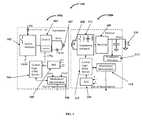 The third circuit consists ofcontrol logic block104, an analog to digital converter (ADC)105 and a modulator/demodulator block106. Thecontrol circuit104 is configured as, for example, a state machine, a microcontroller, etc., of thewireless power transmitter100a. Analog input signals are converted to digital signals by an analog to digital converter (ADC)105 operably coupled to thecontrol logic circuit104 of thewireless power transmitter100a. The output signal of theADC105 is fed to thecontrol logic circuit104. The modulator/demodulator block106 senses, filters and decodes messages from thewireless power receiver100b. The output of the modulator/demodulator block106 is also fed to thecontrol logic circuit104. The third circuit is aware of important dynamic circuit characteristics such as current and voltage in the internal circuitry of thewireless power transmitter100avia theADC block105. TheADC block105 measures various circuit characteristics such as input current (Iin) and voltage (Vin) from the external power source, the voltage and current in the transmitter coil(s)107, the voltage and current in the second circuit, etc. The third circuit includes specialized logic in thecontrol logic circuit104 to measure the phase difference between currents and voltages in the internal circuitry of thewireless power transmitter100asuch as in itstransmitter coil107. The third circuit is aware of important dynamic power characteristics of thewireless power receiver100bvia communicated messages from thewireless power receiver100b. The messages from thewireless power receiver100bmay be received in-band or out-of-band with respect to the wireless power transfer. The modulator/demodulator block106 in the third circuit processes and deciphers these messages and provides the information received from thewireless power receiver100bto thecontrol logic circuit104. Thecontrol logic circuit104 of the third circuit combines information from theADC block105, information from its own specialized phase difference logic and information from the modulator/demodulator block106 to sense the level of magnetic flux coupling between the coils of thewireless power transmitter100aandwireless power receiver100b. Thecontrol logic circuit104 of the third circuit appropriately configures the first circuit, second circuit, transmit coil and input voltage to switchnetwork102 to ensure that a sufficient amount of power is transmitted to thewireless power receiver100beffectively compensating for the rotational misalignment that may exist between the coils of thewireless power transmitter100aandwireless power receiver100b. To compensate for the rotational misalignment and magnetic flux coupling, thecontrol logic circuit104 may drive signals to theswitch network102 to change to an appropriate topology; it may drive the PWM signal to theswitch network102 adhering to the appropriate frequency and duty cycle ranges. Thecontrol logic circuit104 may enable/disable electronic components in thevariable matching circuit103 using general purpose input/outputs (GPIOs) and switches. Thecontrol logic circuit104 may drive appropriate signals to the power conversion block to adjust the input voltage to theswitch network102. Thecontrol logic circuit104 may additionally drive appropriate signals to the tuning circuit to adjust its circuit characteristics to improve wireless power delivery. Thecontrol logic circuit104 may also enable appropriate switches activate appropriate transmitter coil(s) from a plurality of coils for effective wireless power transmission to thewireless power receiver100b.