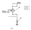 Because of the variations in magnetic flux coupling between thetransmitter coil107 andreceiver coil108, in some scenarios thewireless power receiver100bcircuitry may experience short-term voltage and/or current spikes in excess of the permissible maximum thresholds. Thewireless power receiver100bdisclosed herein includes a simple protection circuitry that naturally turns on and siphons out the excess power when the maximum threshold is exceeded.FIG. 7 exemplarily illustrates a schematic diagram of this over-voltage protection circuitry. In one embodiment, the gate of the p-mosfet transistor701 is driven with a voltage equal to the maximum allowable voltage for Vmon (the voltage that is being monitored) minus the threshold voltage of the transistor. For example: if the maximum allowable voltage for Vmon is 20V and if the threshold voltage for the p-mosfet transistor is 2V, then the gate of the p-mosfet transistor is driven with 18V. If Vmon voltage exceeds 20V, the p-mosfet transistor701 would turn on rapidly (without any user intervention) and direct the excess energy to ground. The excess power is thus siphoned off helping the system recover to normal voltage/power levels and operation. This excess power though could potentially damage theswitch701 itself; hence, to limit the current and power surge through theswitch701, a current limitingresistor702 is added in series in the current path.