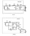Theswitch network102 operates with the modified voltage from the power conversion block. If the power conversion block is not included, theswitch network102 operates with the input voltage Vin and current Iin from the external power source. Theswitch network102 is configured as an inverter in one of multiple inverter topologies, for example, a half bridge inverter topology, a full bridge inverter topology, a class D inverter topology, a class E inverter topology, etc. Theswitch network102 comprises transistors that are configured to change a state, for example, into an on state or an off state, based on signals supplied to theswitch network102 from the third circuit. In an embodiment, theswitch network102 is configured as a direct AC-AC converter where theswitch network102 is directly fed with the AC mains power or with AC mains power post-rectification but with significant DC bus voltage ripple. In such an AC-AC converter, theswitch network102 is configured in one of half bridge and full bridge topologies. Based on signals from the third circuit, the transistors in theswitch network102 are activated in synch with the voltage direction of the AC mains power. The AC mains power is effectively injected into the tank circuitry that is downstream of the switch network.