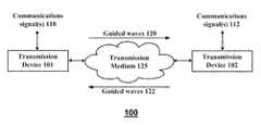 Consequently, electrical systems that require forward and return conductors for carrying corresponding forward and reverse currents on conductors to enable the propagation of electrical signals injected by a sending device are distinct from guided wave systems that induce guided electromagnetic waves on an interface of a transmission medium without requiring an electrical return path to enable the propagation of the guided electromagnetic waves along the interface of the transmission medium.