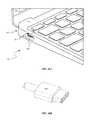 FIG. 40A shows a close up view of a left side ofportable computing system100 anddata port126. In some embodiments,data port126 can serve as the only physical connector port for transferring high-speed data or receiving external power. In one particular embodiment,data port126 can take the form of a USB-C type port.Data port126 can be an omnidirectional port configured to receive a connector plug in a number of different orientations. In some embodiments, a sidewall ofbase portion102 can remove the need for a connector shell by forming all of a receptacle for receiving a plug, thereby replacing a sheet metal shell that generally supports a connector of this type. In this way, onlyedge connector4002 of a printed circuit board (PCB) secured totop case104 needs to be provided on the PCB that supportsdata port126 with the contacts needed to provide the electrical coupling between the connector plug and internal components ofportable computing system100. In one particular embodiment,edge connector4002 can be a thin protruding portion, sometimes referred to as a tongue of the PCB with certain contacts configured to transfer and receive data and other contacts configured to receive external power. In some embodiments, the PCB can be flexibly mounted todata port126 soedge connector4002 of the PCB can shift in the event of a drop event that occurs when the connector plug is engaged indata port126. In some embodiments, the opening can be a blind hole with an opening in the rear passing entirely through the wall that is only big enough foredge connector4002 of the PCB. In this way, the smaller through hole can define a location ofedge connector4002 withindata port126. In some embodiments, an end of the blind hole that surrounds the opening passing through the wall ofbase portion102 can include a rubber gasket or other protective layer configured to prevent scratching or wear upon the receptacle from repeated insertion and extractions of a connector plug. It should be noted that in some embodiments sidewalls defining the receptacle of fordata port126 can be conductive in nature so that a plug engagingdata port126 can be grounded tobase portion102. In some embodiments, making these walls conductive can involve selectively removing a protective layer such as an anodization layer from the metal defining the receptacle.FIG. 40B shows a perspective view of an exemplaryelectric plug4004 configured to engagedata port126.