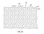FIGS. 5A & 5B depict another embodiment of a tamper-respondent sensor500, in accordance with one or more aspects of the present invention. As illustrated, tamper-respondent sensor500 includes at least one formedflexible layer510 having opposite first andsecond surfaces511,512.Circuit lines501 forming at least one resistive network are provided on at least one of the first orsecond sides511,512 of formedflexible layer510. As noted, the circuit lines may comprise any desired pattern of conductive circuit lines advantageous for a particular tamper-respondent sensor technology, and may include multiple sets of circuit lines in different regions or zones of the formed flexible layer. By way of example, the circuit lines may comprise conductive lines such as metal lines (e.g., copper lines), wires, printed conductive ink (e.g., carbon ink), etc. provided on one or both of the first and second sides of formedflexible layer510. As illustrated inFIG. 5A, the formed flexible layer again includescurvatures513, with the formed flexible layer with curvatures being collapsed as a flattened, folded layer in this embodiment. Note thatcircuit lines501 forming the at least one resistive network on thefirst side511 orsecond side512 of formedflexible layer510 overlie, at least in part, at least some ofcurvatures513, such that the circuit lines wrap over or within thecurvatures513 and in transverse cross-section view, provide multiple layers of circuit lines formed on the same curving surface of the formed flexible layer. In one or more embodiments, formedflexible layer510 may be a corrugated layer that has been flattened by applying a z-direction force with a metered x-y shear force, creating a controlled, flattening collapse of the multi-dimensional, formedflexible layer510.