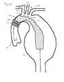 The positions of the fenestrations (28a-28dofFIG. 1), which are placed as part of the fabrication process of the device, are preferably determined by previously obtained imaging, usually consisting of a computed tomography (CT) scan. Such scans identify very precisely the location of the major branch vessels. The data set is made available to the fabricator of the device, and the fenestrations located accordingly. Alternatively, a standard set of fenestrations may be incorporated into a set of non-customized devices, based on general anatomic data which encompass a certain, presumably large percentage of the population.